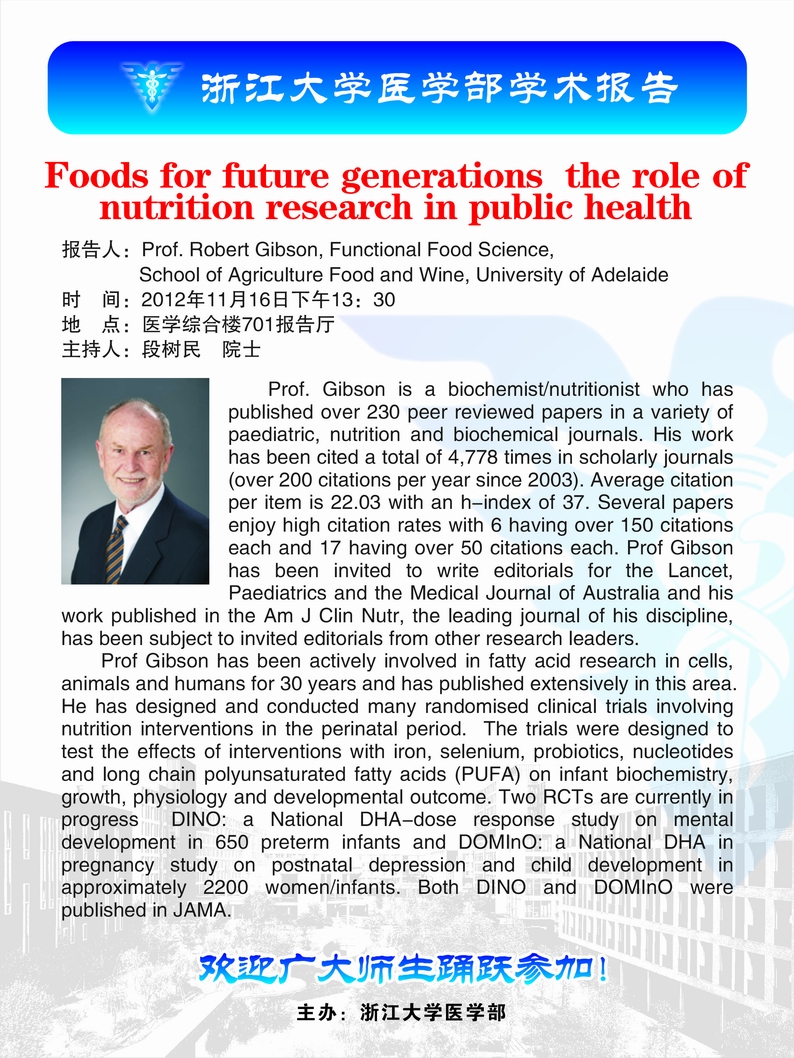 澳大利亚阿德莱德大学教授学术报告-Foods for future generations – the role of nutrition research in public health