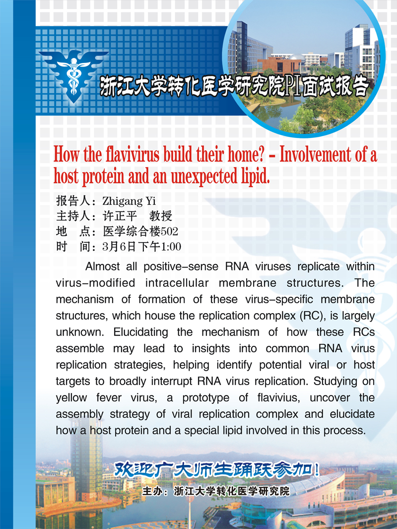 Zhigang Yi博士:How the flavivirus build their home? –Involvement of a host protein and an unexpected l