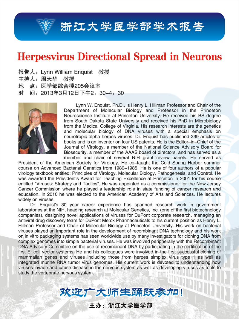 医学部学术报告第四十八场——Lynn William Enquist 教授学术报告