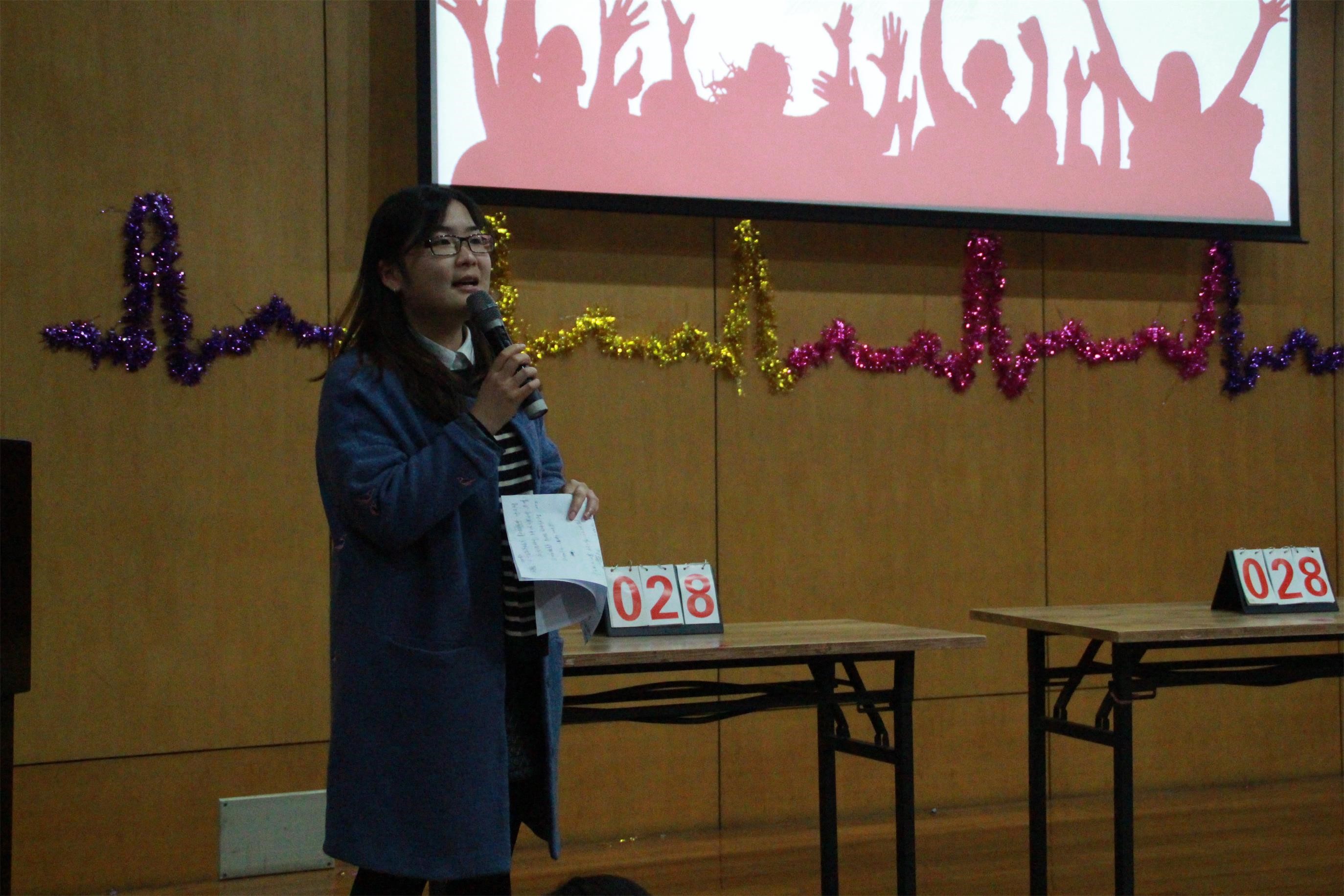在工作人员统计分数的间隙,进行了观众互动环节。台下的同学们踊跃参与,率先将手中的羽毛球投入筐中的即可答题,答对就有小礼品相送。一时间,台上笑声与羽毛球齐飞,台下欢呼共彩带一色。